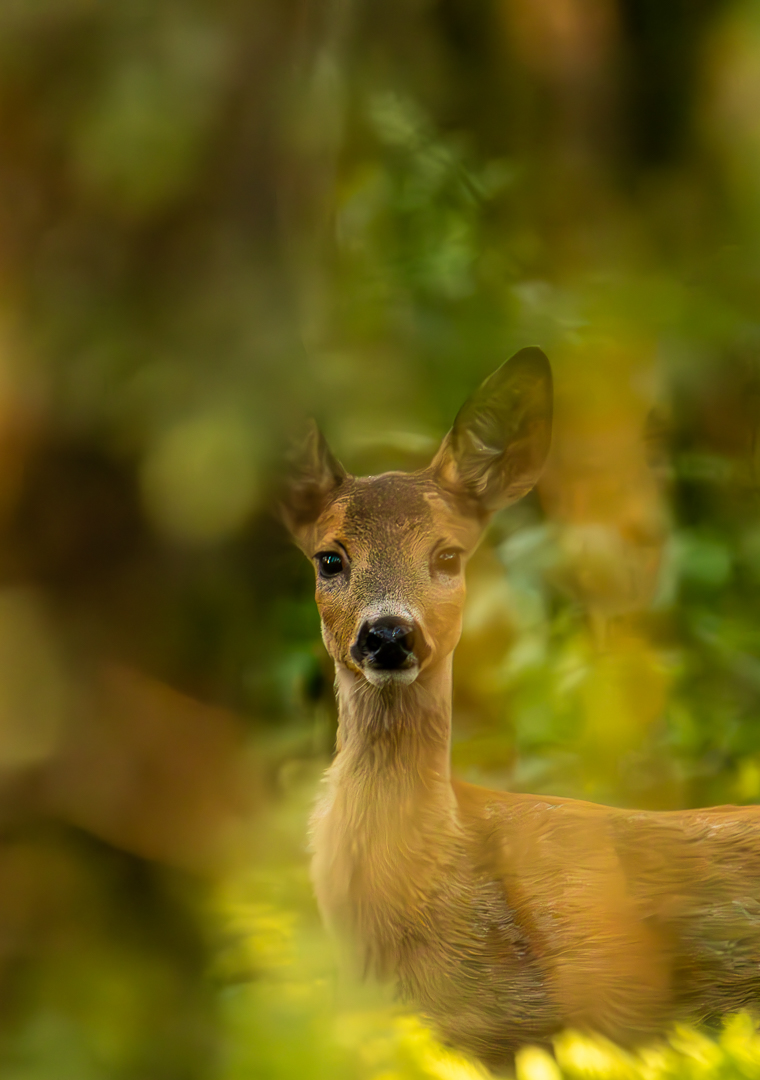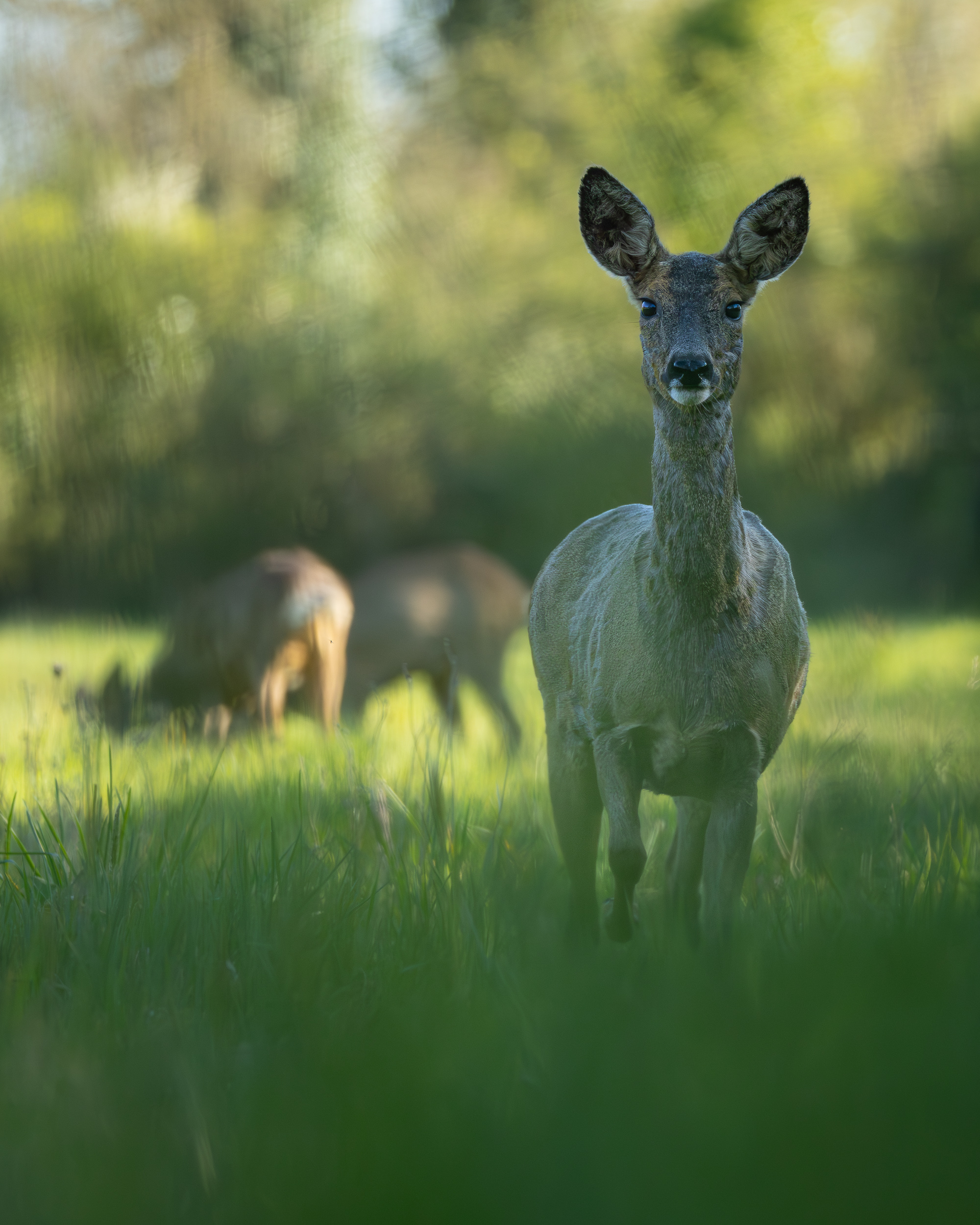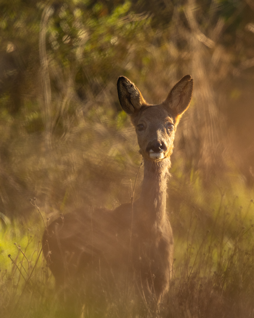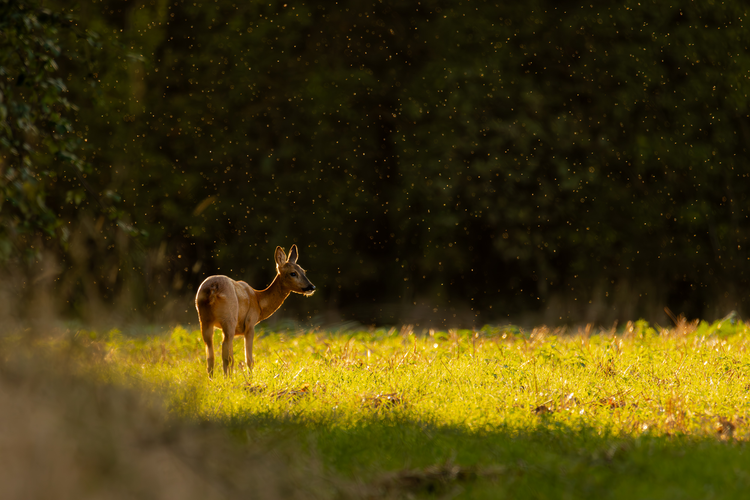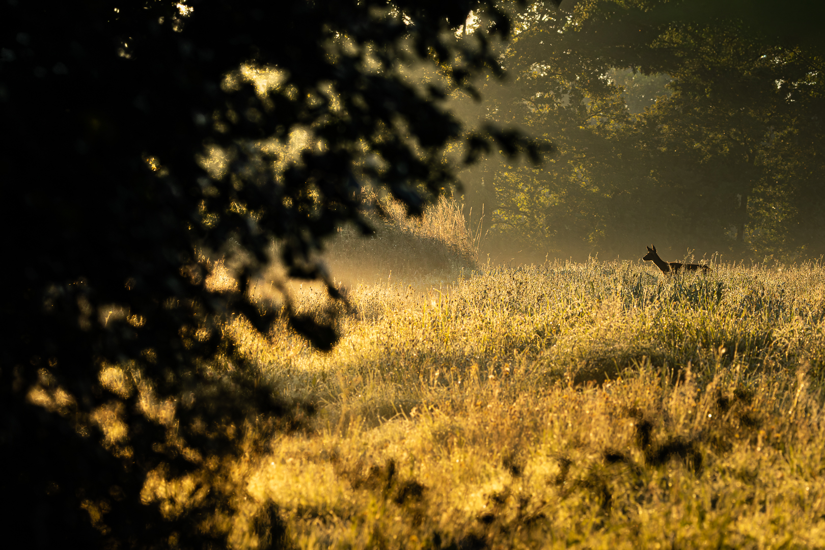 À l’orée du bois ou d’un champ, il apparaît comme une évidence silencieuse. Ses pas légers effleurent l’herbe encore perlée de rosée ou bercée par la lumière du soir. Le chevreuil règne sans bruit, prince fragile des frontières invisibles. Entre ombre et lumière, il incarne la grâce du monde sauvage.